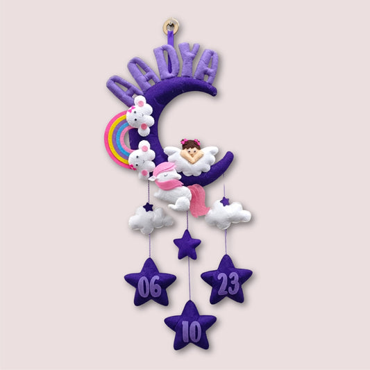 Angel On Moon with cloud | Personalised Felt Kids Hanging