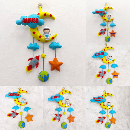 Astronaut in Space with Moon and clouds | Personalised Felt Kids Decor
