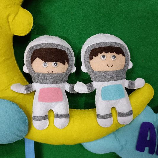 Astronaut Siblings Hanging With Moon and clouds | Personalised Felt Kids Decor