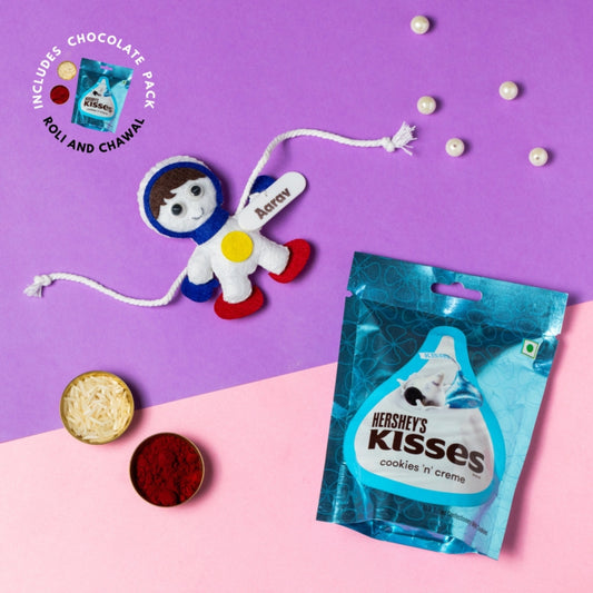 Astronaut Hanging with Personalised Rakhi, Chocolates,Roli and Chawal | Rakhi Hamper