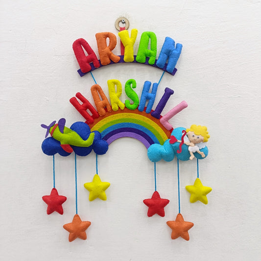 Airplane and Cupid With Stuff Name | Personalised Felt Kids Hanging