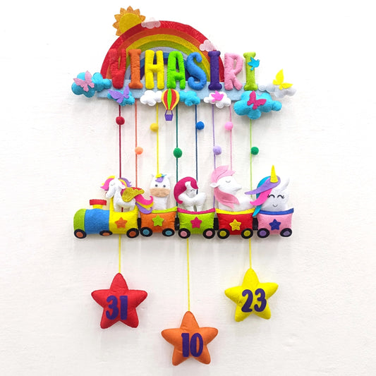 Rainbow Unicorn Train | Personalised Felt Kids Hanging