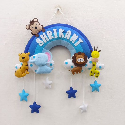 Rainbow with Animals | Flat Name | Personalised Felt Kids Hanging