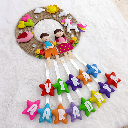 Boy Girl Sibling Jute Hanging | Personalised Felt Kids Hanging