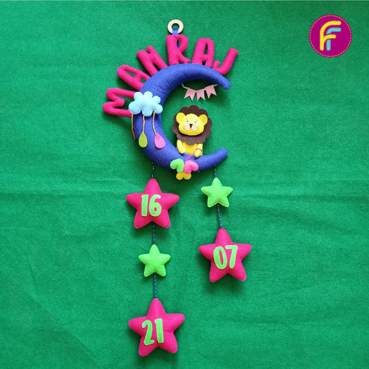 Cute Lion on Moon | Personalised Felt Kids Hanging
