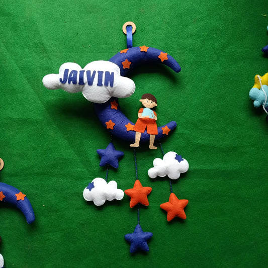 Boy with Moon and Cloud | Personalised Felt Kids Hanging | Sibling