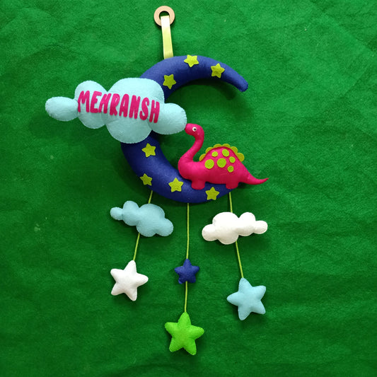 Dinosaur with Moon and Cloud | Personalised Felt Kids Hanging | Sibling
