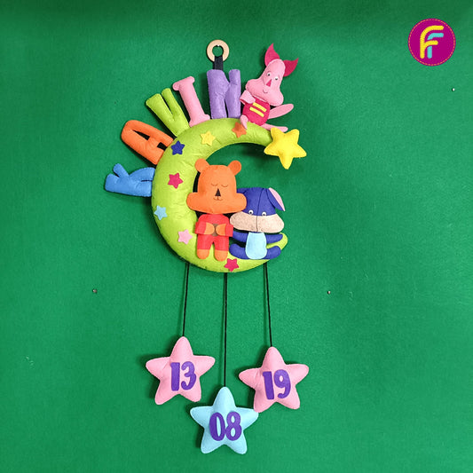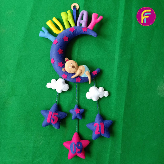Teddy Sleeping on Moon | Personalised Felt Kids Hanging