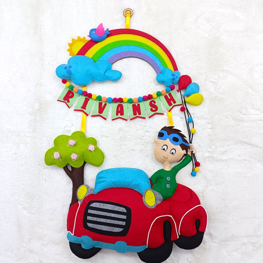 Car with Rainbow | Personalised Felt Kids Hanging