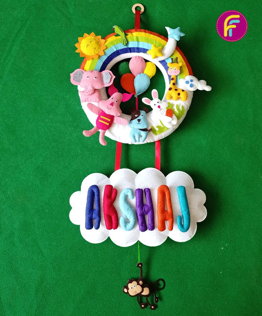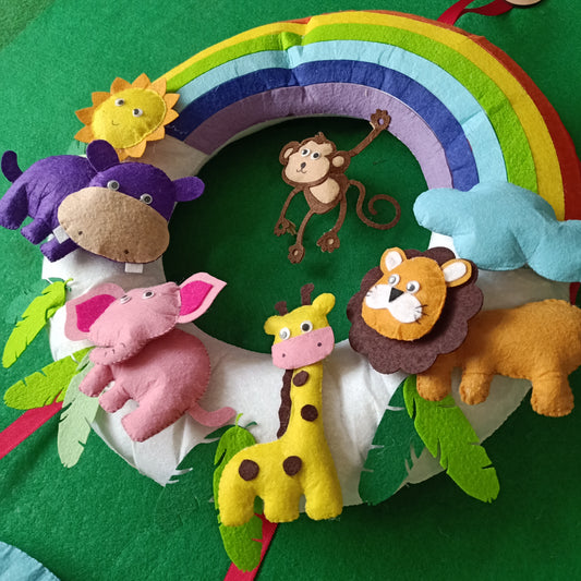 Rainbow and Animals | Personalised Felt Kids Hanging