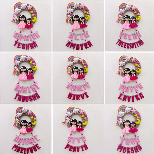 Beautiful Doll Siblings | Personalised Felt Kids Jute Hanging