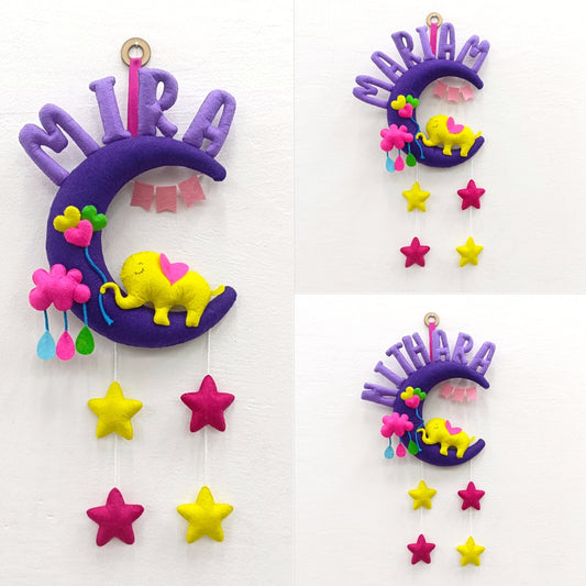 Cute Jumbo Elephant On Moon | Personalised Felt Kids Hanging