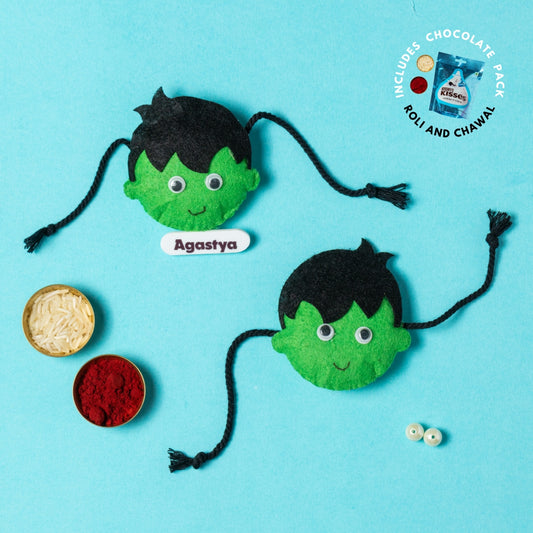 Hulk Rakhi Combo with Chocolates, Roli and Chawal | Personalised Kids Rakhi
