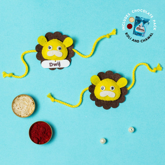 Lion Rakhi Combo with Chocolates, Roli and Chawal | Personalised Kids Rakhi