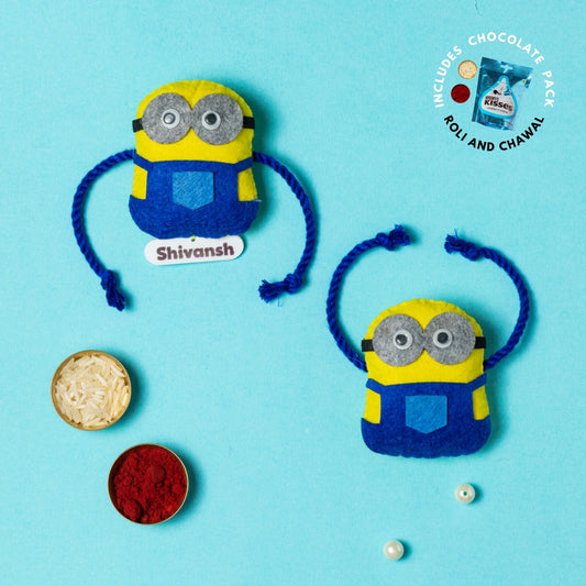 Minion Rakhi Combo with Chocolates, Roli and Chawal | Personalised Kids Rakhi