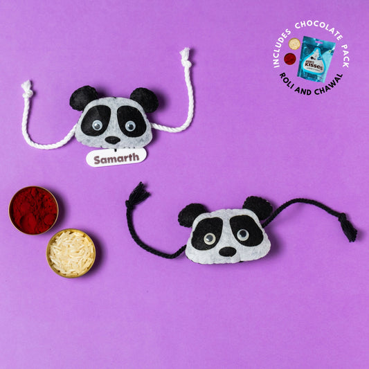 Panda Rakhi Combo with Chocolates, Roli and Chawal | Personalised Kids Rakhi