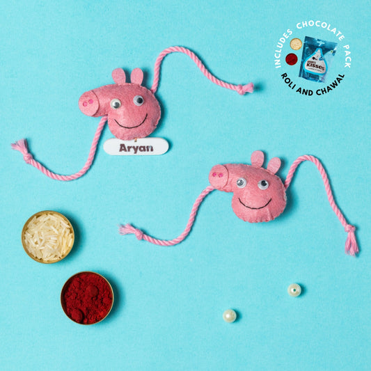 Peppa Rakhi Combo with Chocolates, Roli and Chawal | Personalised Kids Rakhi