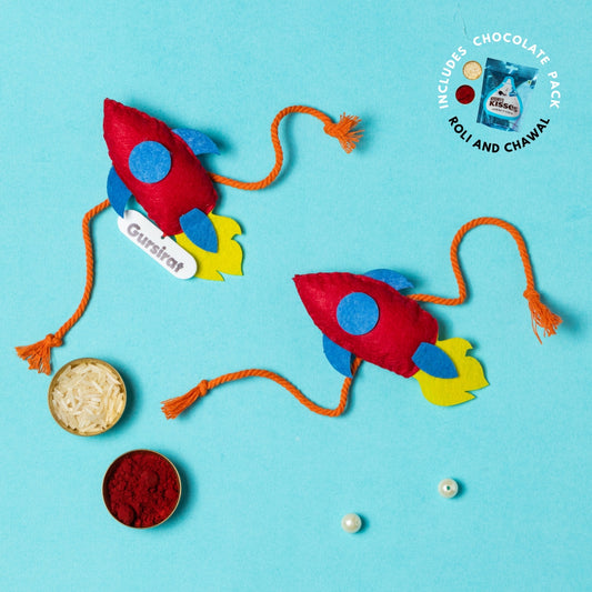 Spaceship Rakhi Combo with Chocolates, Roli and Chawal | Personalised Kids Rakhi