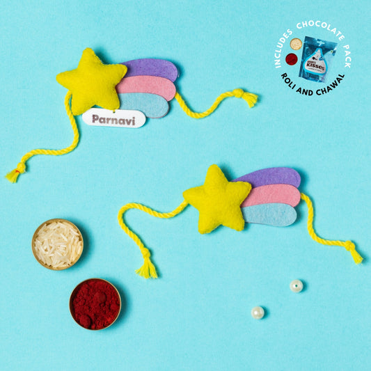 Miracle Star Rakhi Combo with Chocolates, Roli and Chawal | Personalised Kids Rakhi