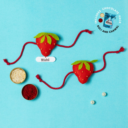 Strawberry Rakhi Combo with Chocolates, Roli and Chawal | Personalised Kids Rakhi