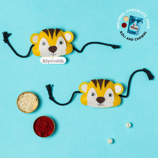Tiger Combo with Chocolates, Roli and Chawal | Personalised Kids Rakhi