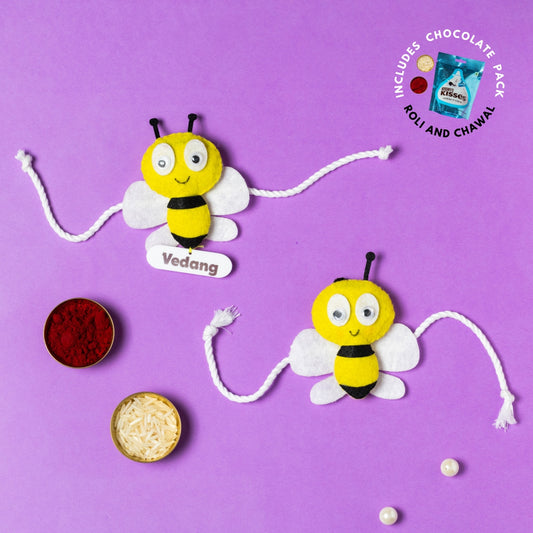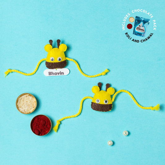 HoneyBee Rakhi Combo with Chocolates, Roli and Chawal | Personalised Kids Rakhi