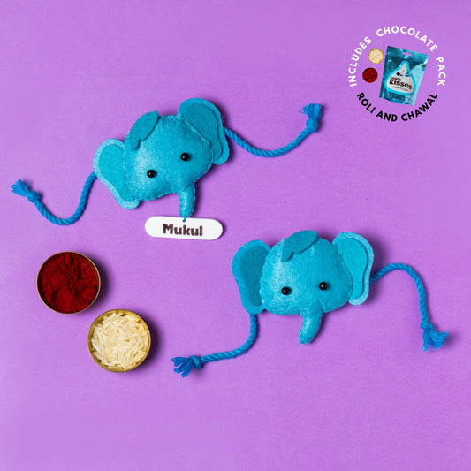 Elephant Rakhi Combo with Chocolates, Roli and Chawal | Personalised Kids Rakhi