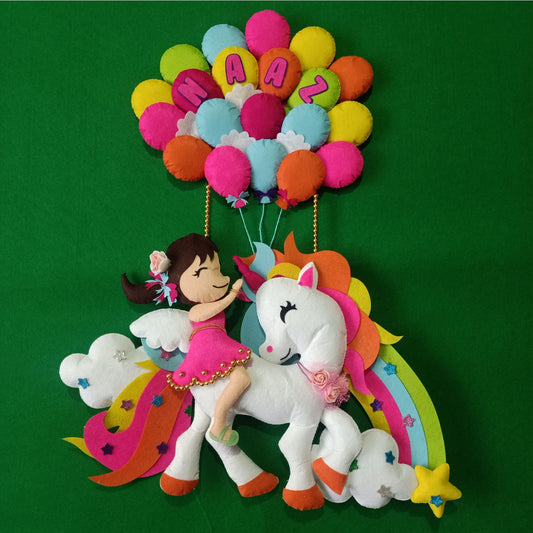 Unicorn with Balloons | Personalised Felt Kids Hanging
