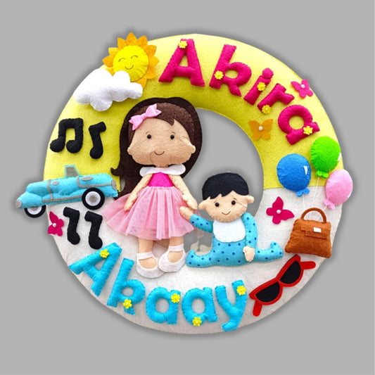 Siblings with Nature Buddies | Personalised Felt Kids Hanging | Premium Range