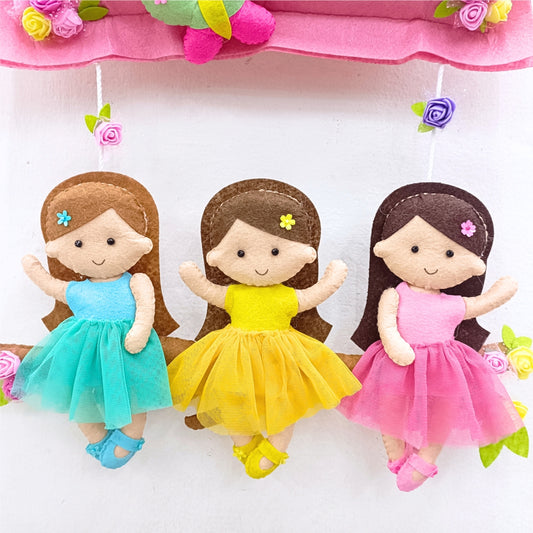 Dolls on Swing | Personalised Felt Kids Hanging for Siblings