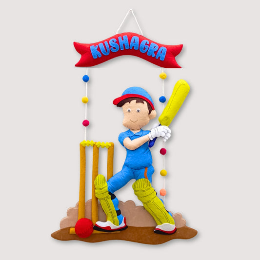 Boy Playing Cricket | Personalised Felt Kids Room Decor