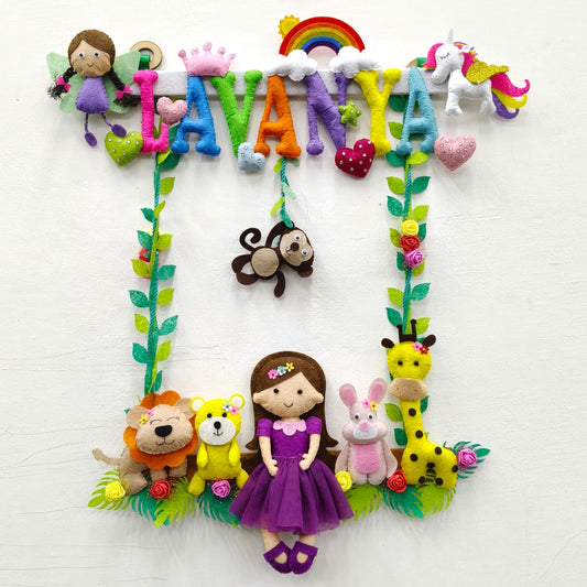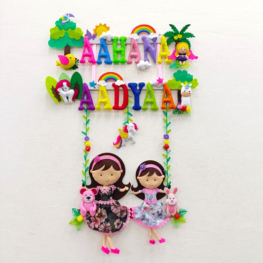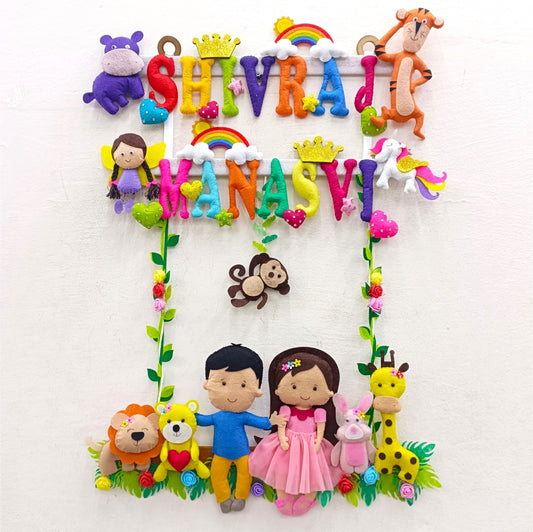 Siblings on Swing | Personalised Felt Kids Hanging | Premium Range