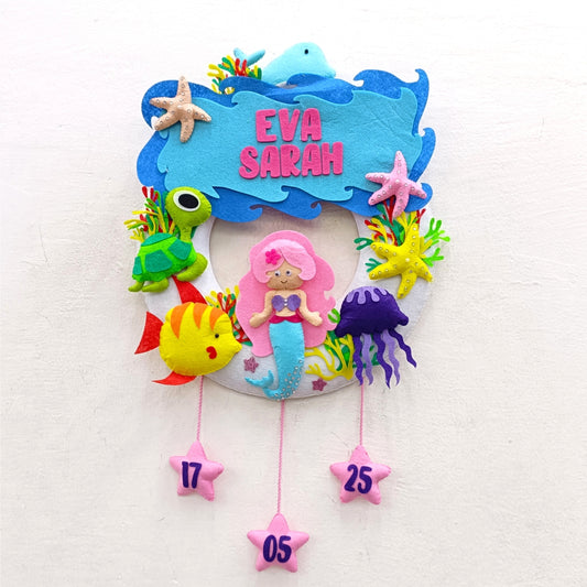 Mermaid On Swing | Personalised Felt Kids Room Decor