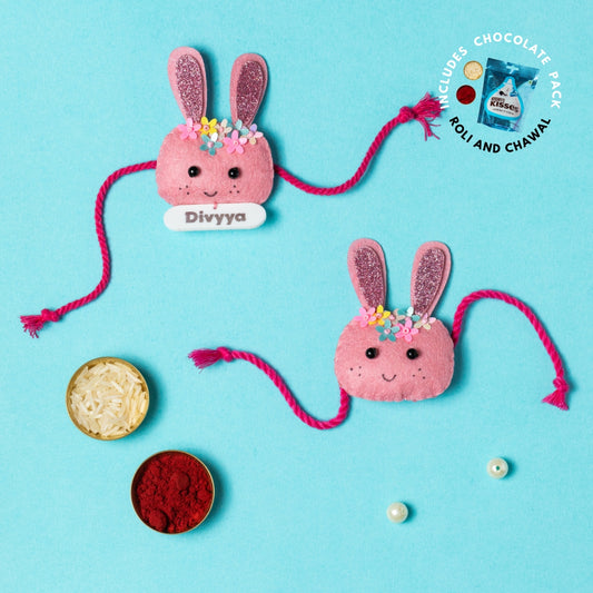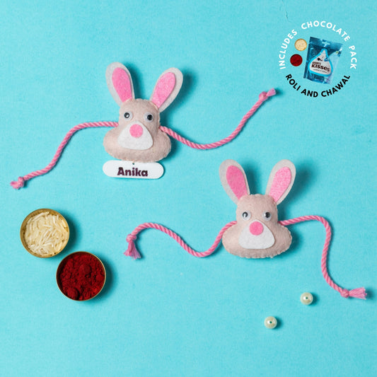 Bunny Rakhi Combo with Chocolates, Roli and Chawal | Personalised Kids Rakhi