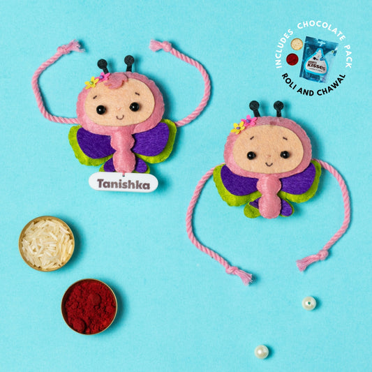 Butterfly Rakhi Combo with Chocolates, Roli and Chawal | Personalised Kids Rakhi