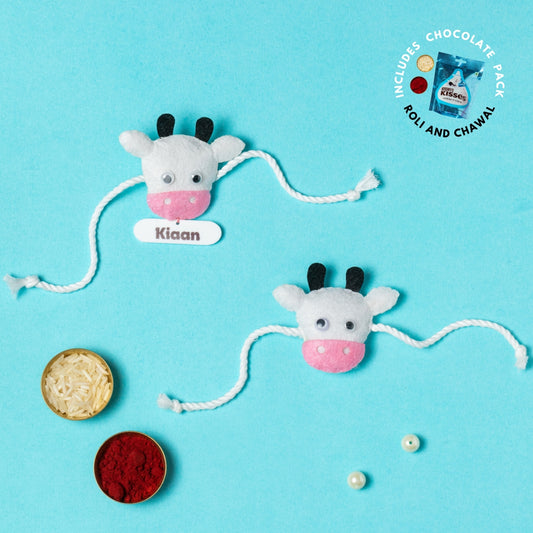 Cow Rakhi Combo with Chocolates, Roli and Chawal | Personalised Kids Rakhi