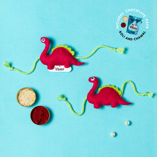 Dino Rakhi Combo with Chocolates, Roli and Chawal | Personalised Kids Rakhi