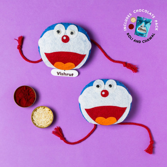 Doraemon Rakhi Combo with Chocolates, Roli and Chawal | Personalised Kids Rakhi
