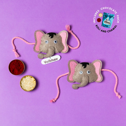 Elephant Rakhi Combo with Chocolates, Roli and Chawal | Personalised Kids Rakhi