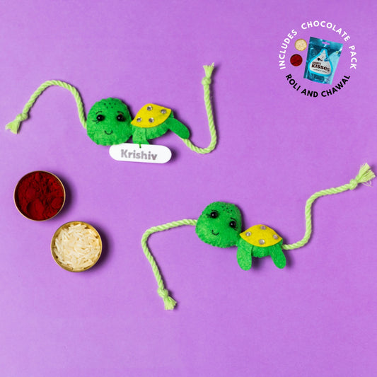 Turtle Combo with Chocolates, Roli and Chawal | Personalised Kids Rakhi