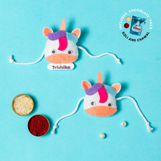 Unicorn Combo with Chocolates, Roli and Chawal | Personalised Kids Rakhi